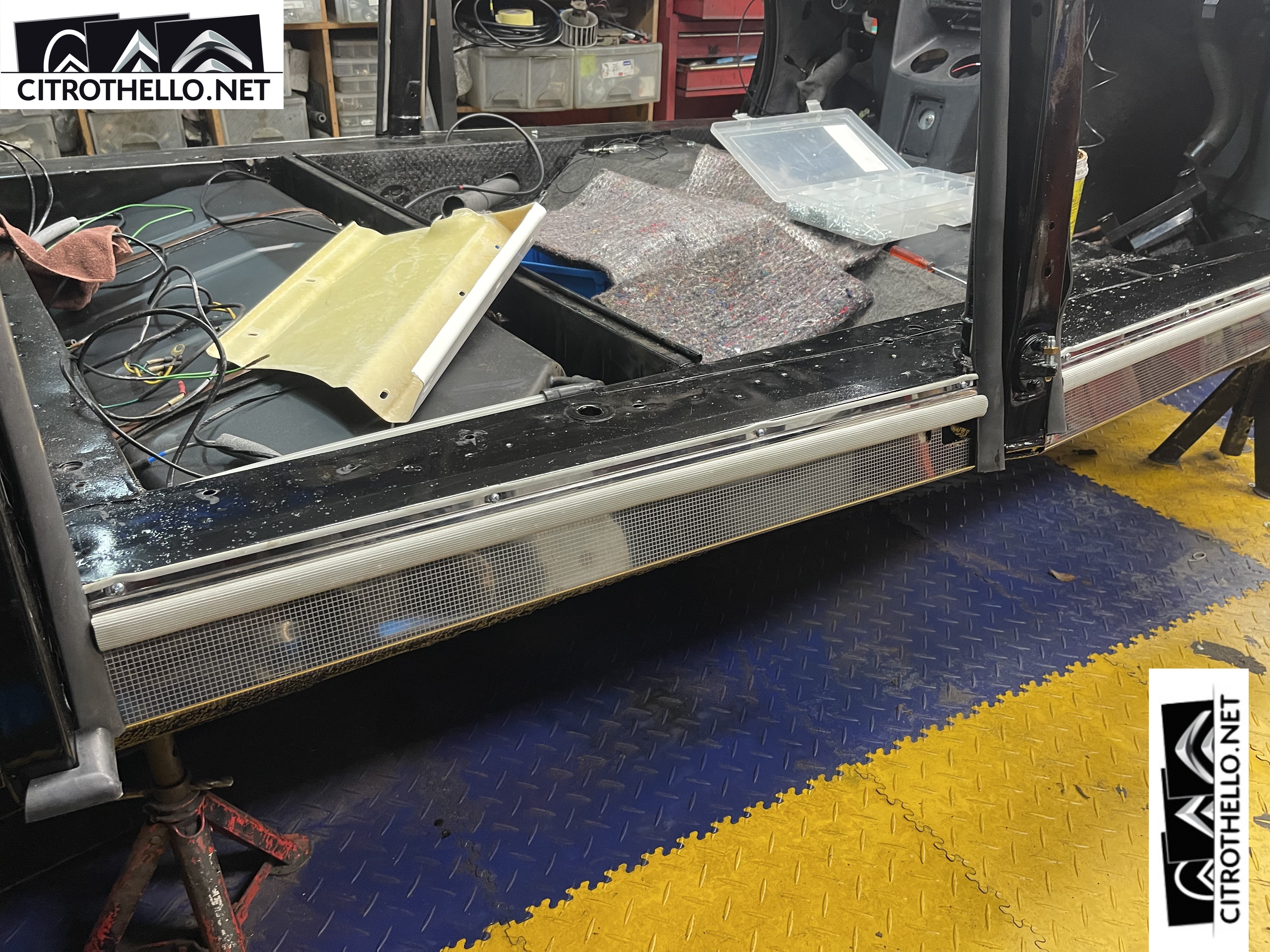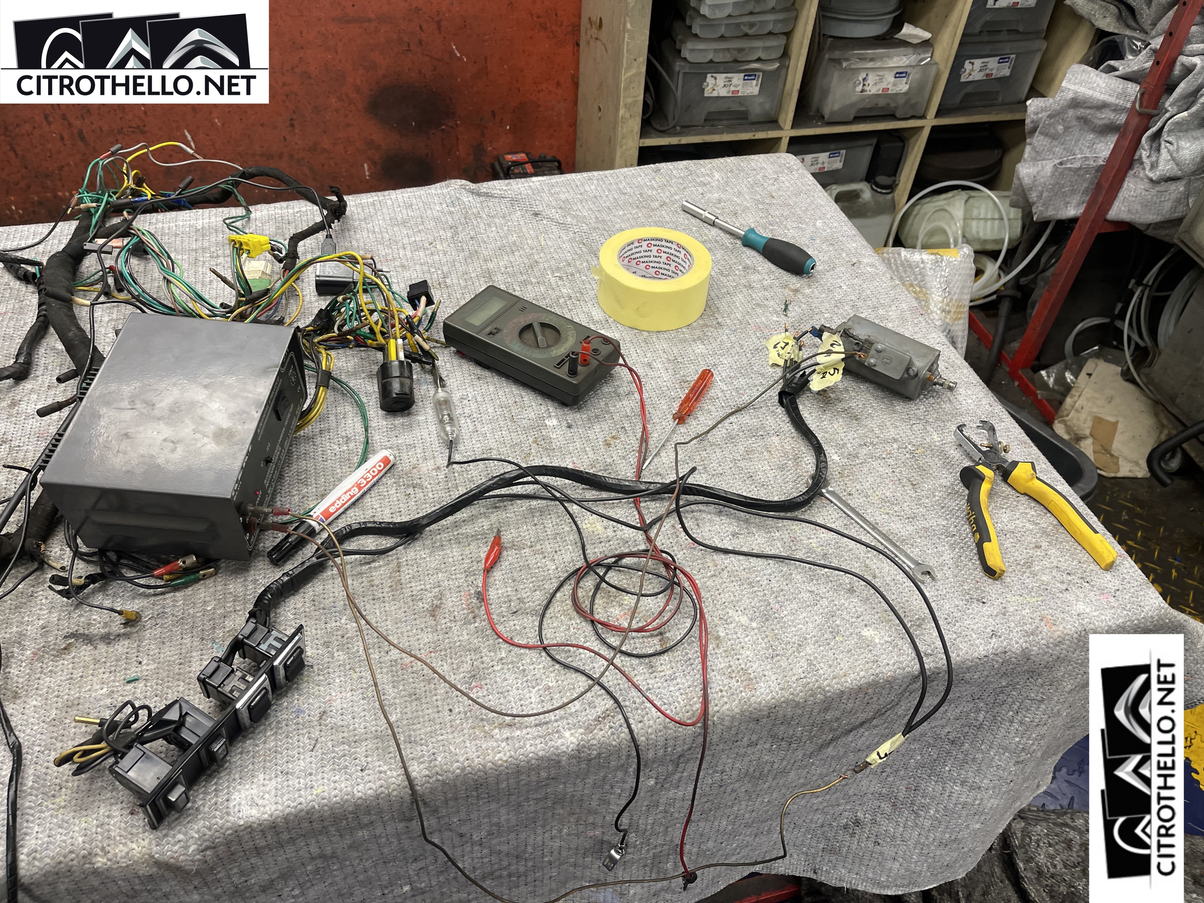 Je me suis affairé a préparer la repose de la planche de bord. Le compteur dont on trouve a façade neuve demande du travail, mais le résultat est bon. Pose du faisceau électrique, en améliorant sérieusement les options montées par les ateliers Chapron. En effet, les fils des vitres électriques passaient par le compartiment moteur, une boite à fusible différente des DS fu utilisée.. Bref j’ai tout amélioré comme si Citroën avait réellement prévu le montage des ces accessoires. Remontage de diverses pièces tel que le frein à main. Pose des seuils Pallas inox. Pose de la planche de bord, Pose de la moquette, et pose de la séparation Prestige.